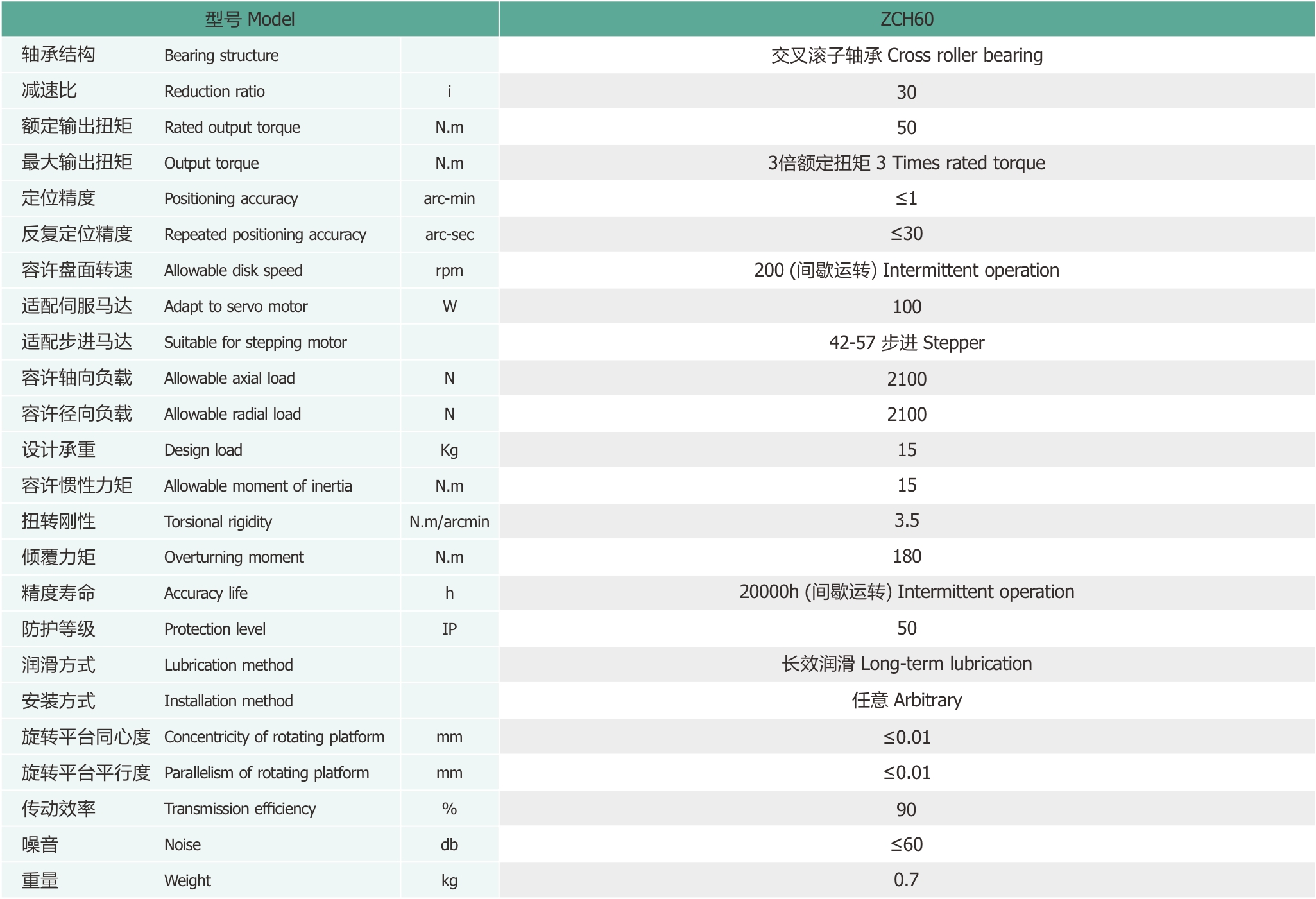 The output of the 100W Harmonic Drive Hollow Rotary Platform Reducer adopts a crossed roller bearing design, which is a major innovative highlight. This unique design allows users to directly mount the load on the rotary platform without adding additional complex support structures. In traditional transmission systems, to bear the load, it is often necessary to install additional support frames, guide rails and other components under or around the rotary platform, which not only increases the complexity and cost of the system, but also takes up a lot of space and reduces the overall integration of the equipment.
